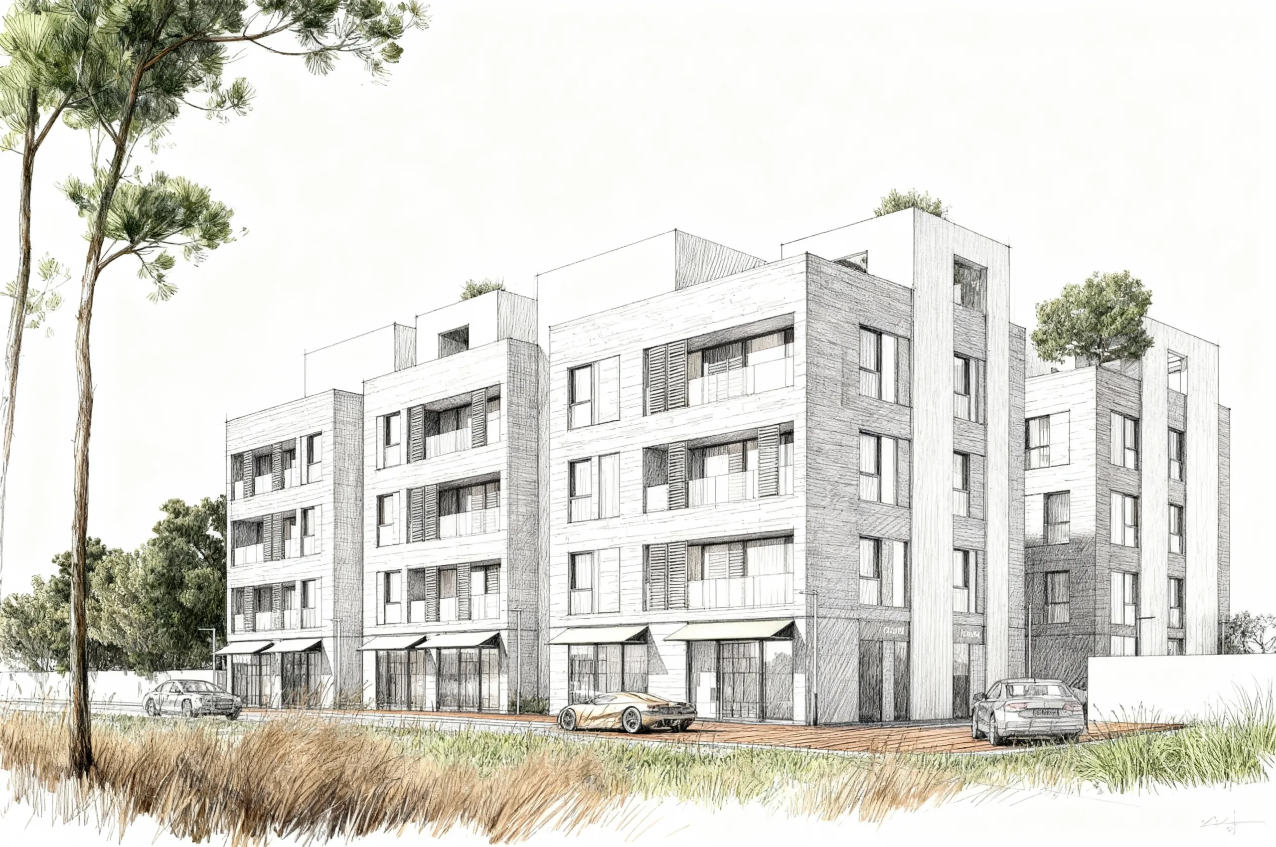 Situated on a main street, the project benefits from excellent accessibility and visibility, factors that are crucial for the commercial spaces and the overall viability of the residential complex.