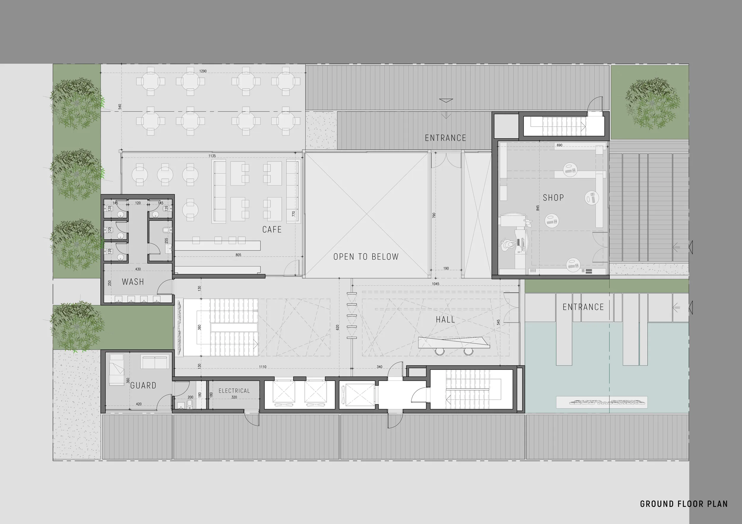 The Social Nexus (Ground Floor): This level acts as the building’s heart, housing the main reception lobby, a boutique retail shop, and a contemporary cafe. A central void (Open to Below) serves as a lung for the building, facilitating air circulation and visual transparency between the public and training zones.